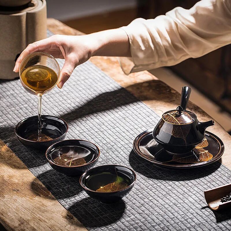 建盏,也叫“天目”,黑瓷代表,是中国宋代八大名瓷之一。宋代崇尚自然含蓄的美学思想,人们在陶瓷造型上追求大方简洁,质朴无华,反对过多装饰雕琢,在釉色上偏重本身安静典雅的色泽,讲究自然天成。建盏完美地展现了宋朝素朴归真的闲情雅致以及天人合一的审美情趣。