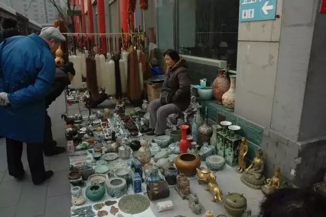 潘家园市场里是有很多地摊的。你在逛的时候千万不要为了图省事,一脚跨过地摊走捷路。因为这一是对卖家不尊重;二是如果不小心碰坏东西,那就是 “无价”的宝贝了。![]()