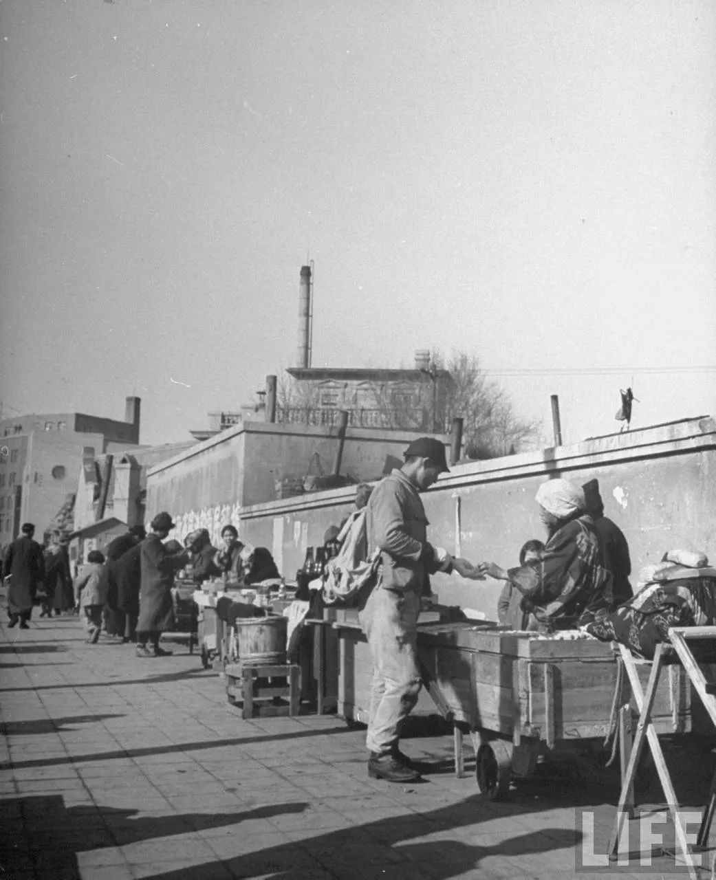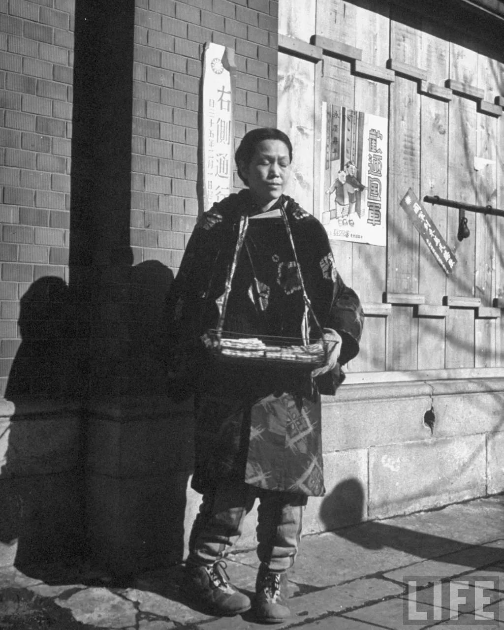 美国《LIFE》:沈阳,贫困的日本妇女在用托盘贩卖香烟,1946年