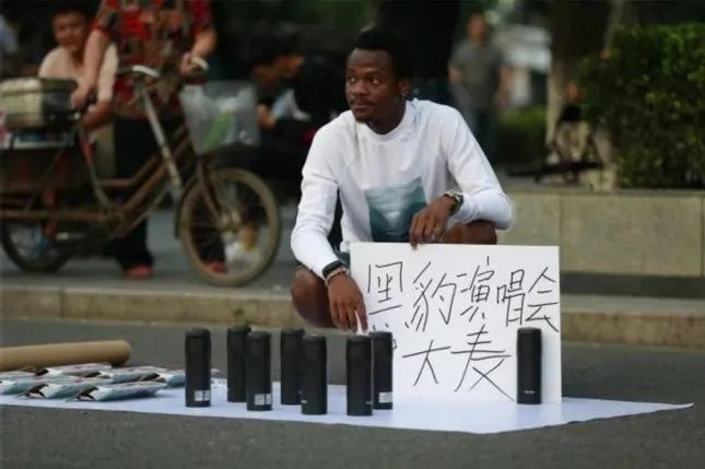黑豹乐队30年演唱会,黑人小伙在门口摆摊卖保温杯,2017年