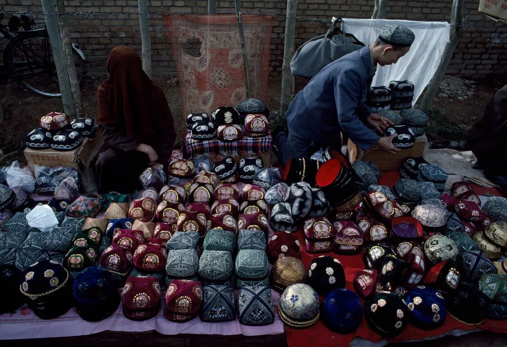 布鲁诺·巴贝:新疆,花帽摊,1989年