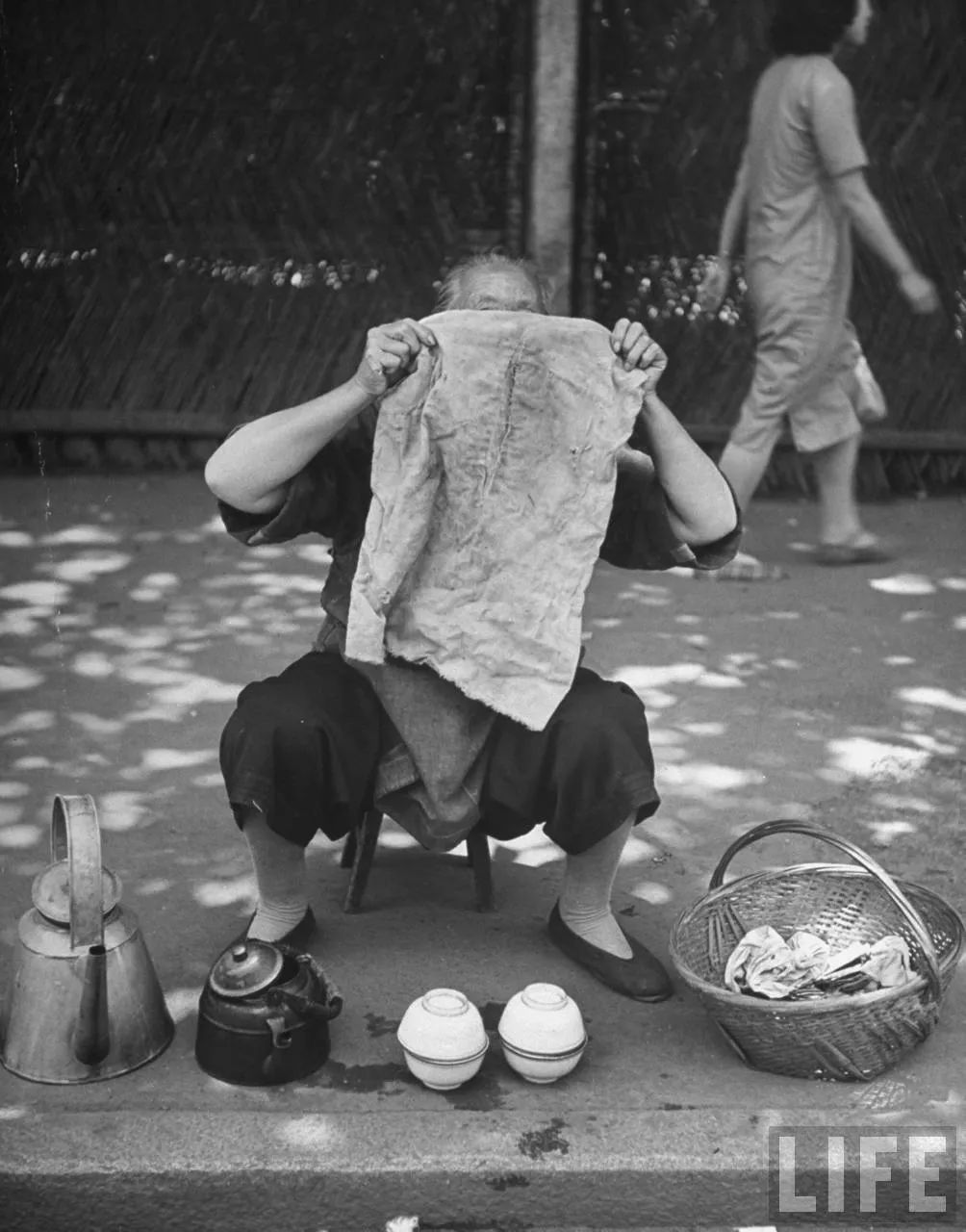 美国《LIFE》:上海,路边卖茶水的老太婆,1947年