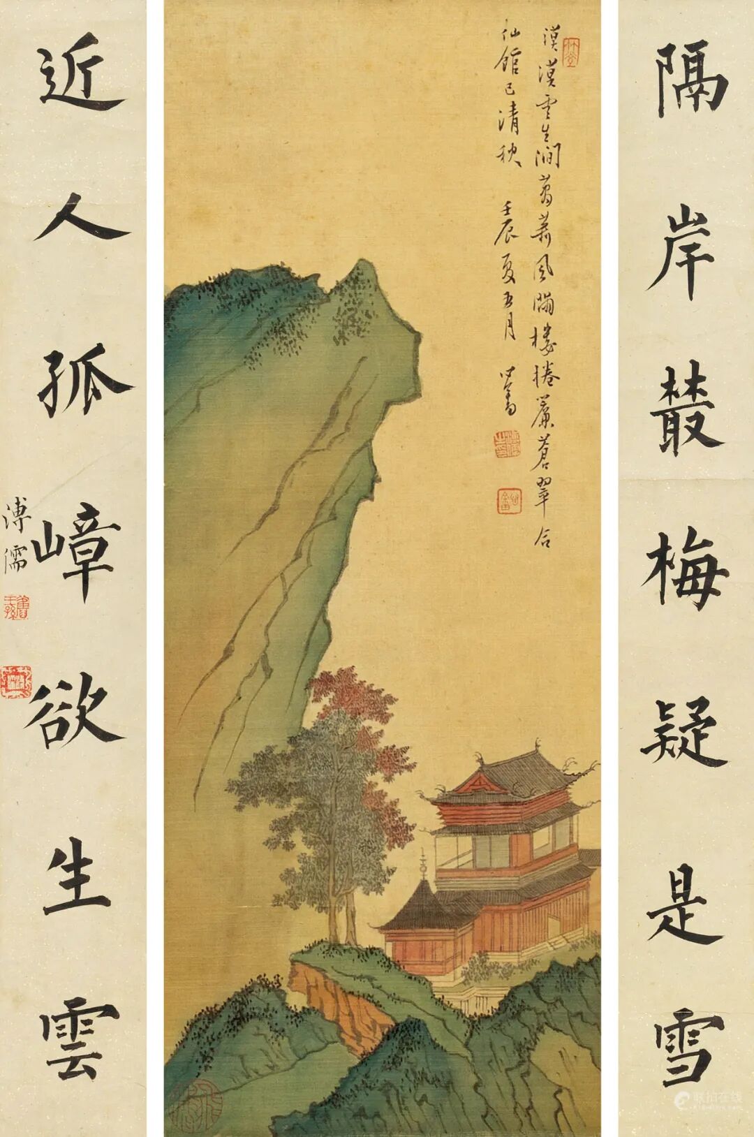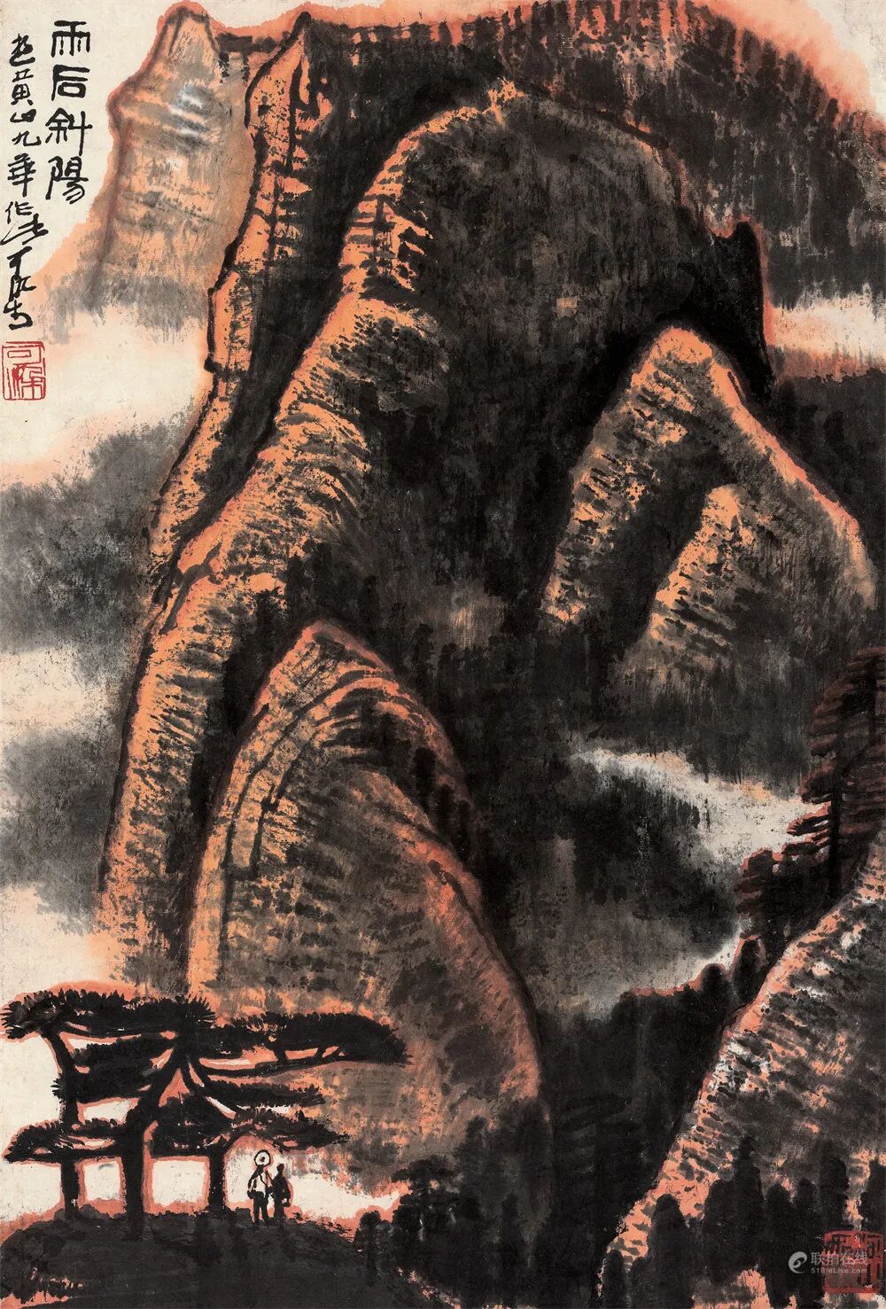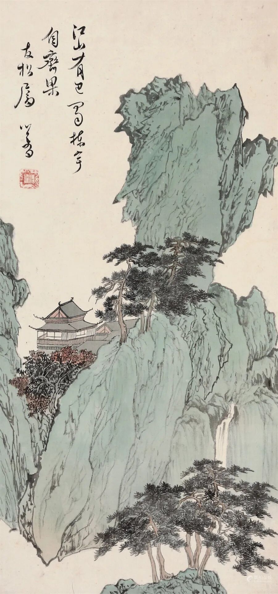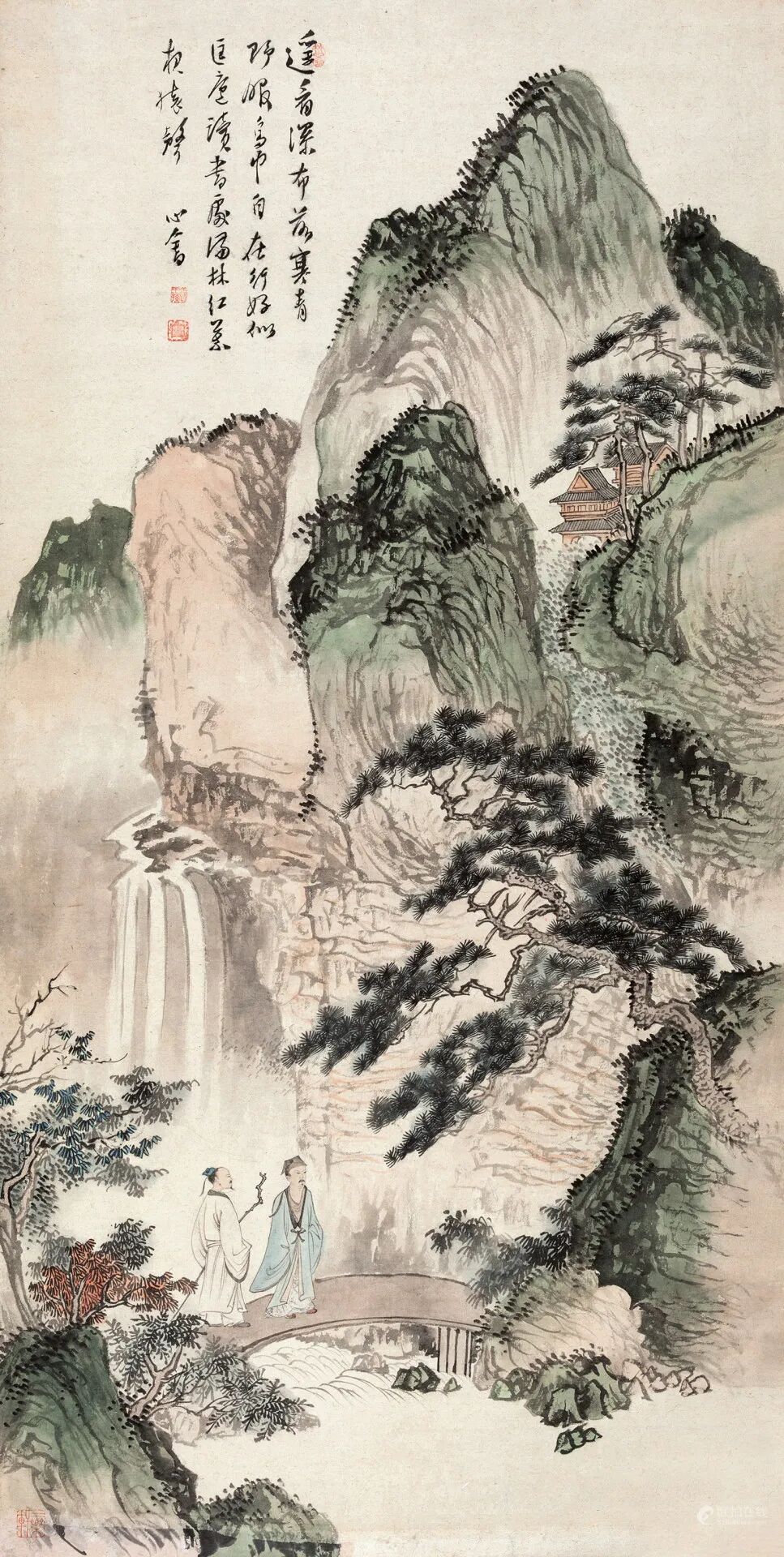 拍品估价:800,000 - 1,200,000 人民币款识:遥看瀑布落寒青,野服乌巾自在行。好似匡庐读书处,满林红叶夜猿声。心畬。1.《恭王府与溥心畬》P112,文化艺术出版物,2014年。2.《中国书画作品集(三)》P168,西泠印社出版社。