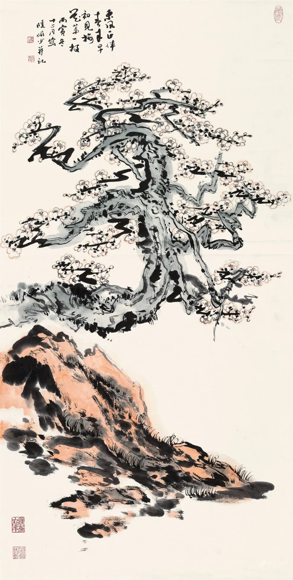 拍品估价:200,000 - 250,000 人民币款识:东风正伴春来早,初见梅花第一枝。丙寅初冬十二月写,陆俨少并记。说明:中国嘉德2017春季拍卖会《缤纷集——聚焦私人收藏》第0493号拍品。