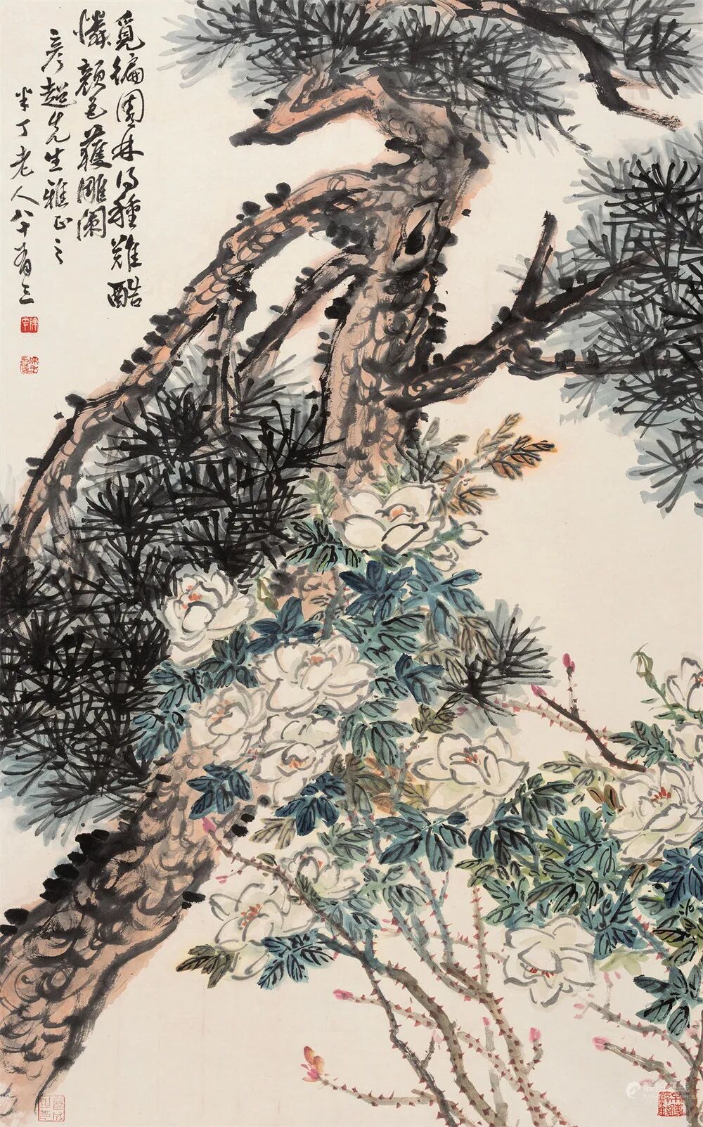 拍品估价:100,000 - 150,000 人民币款识:觅遍园林得种难,酷怜颜色护雕阑。彦超先生雅正之。半丁老人八十有三。