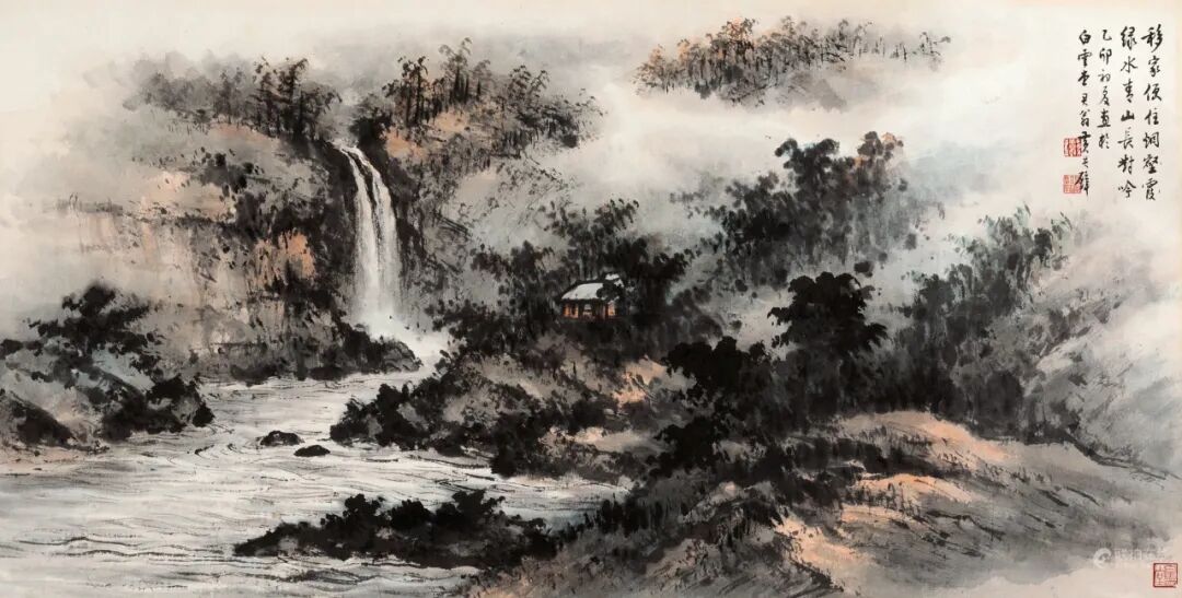 拍品估价:180,000 - 280,000 人民币款识:移家便住烟壑霞,绿水青山长对吟。乙卯初夏画于白云堂,君翁黄君璧。