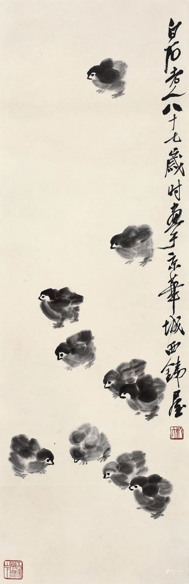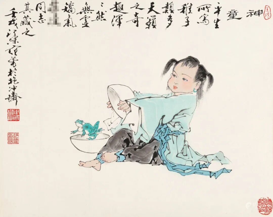 款识:平生所写稚子类多天籁之奇趣,浑浑然无虚矫气。□□同志其藏之。壬戌,江东范曾于抱冲斋。
