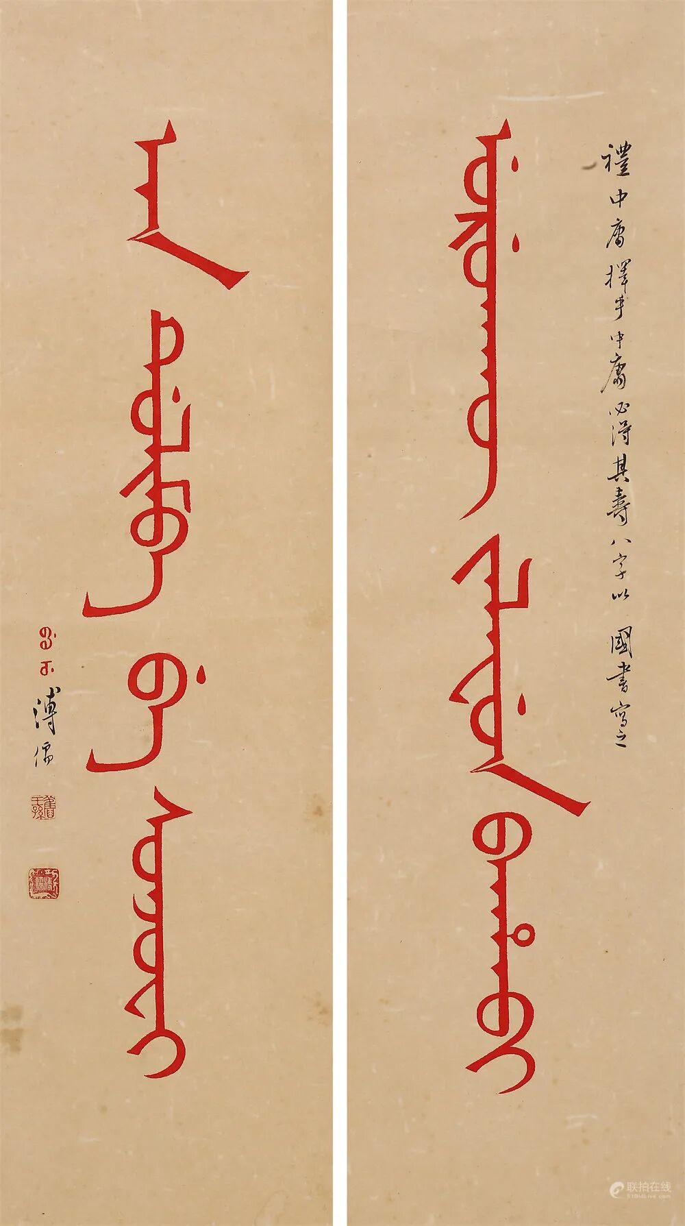拍品估价:80,000 - 120,000 人民币款识:礼中庸,择乎中庸,必得其寿。八字以国书写之。溥儒。
