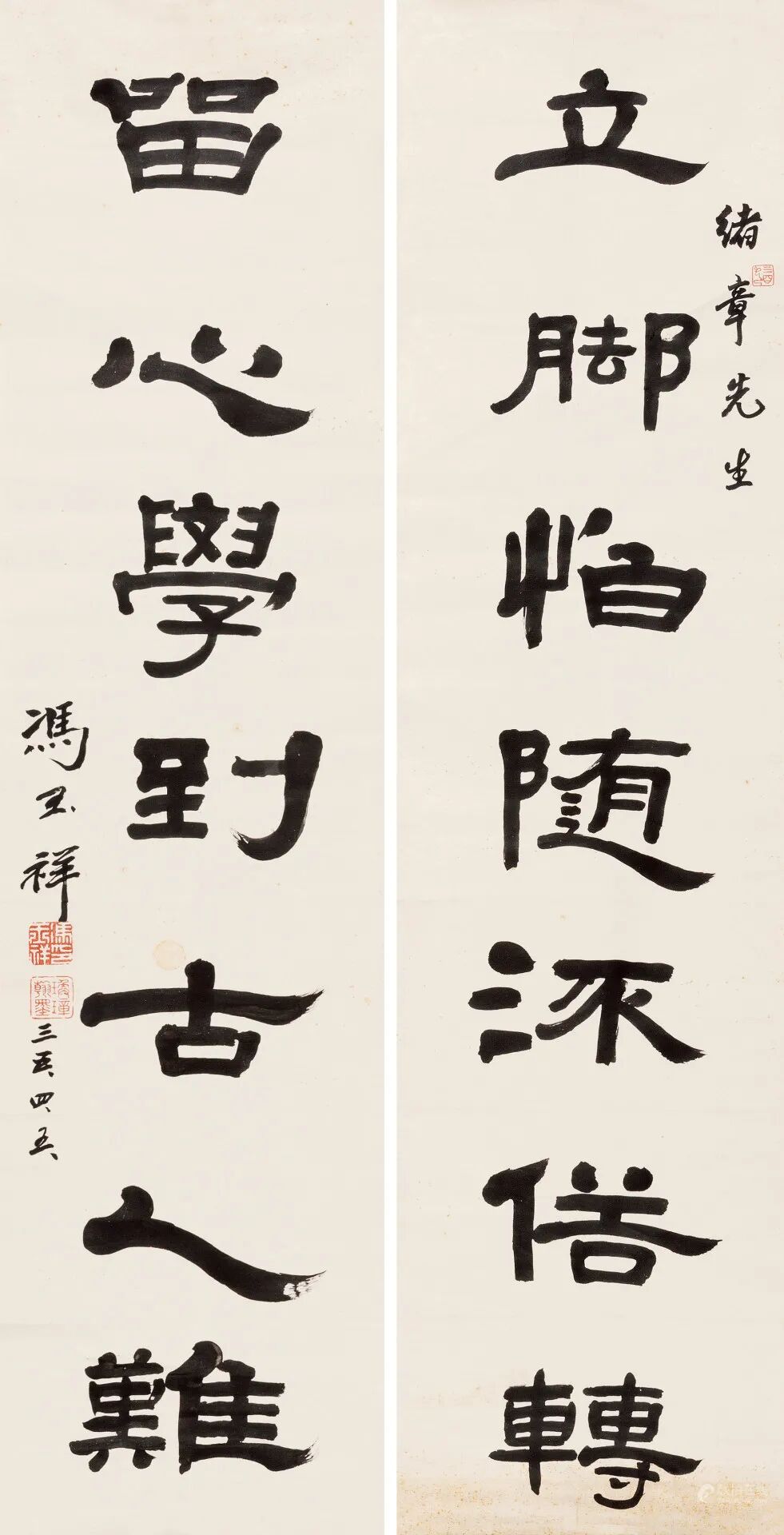 款识:立脚怕随流俗转,留心学到古人难。绪章先生,冯玉祥三五.四.五.