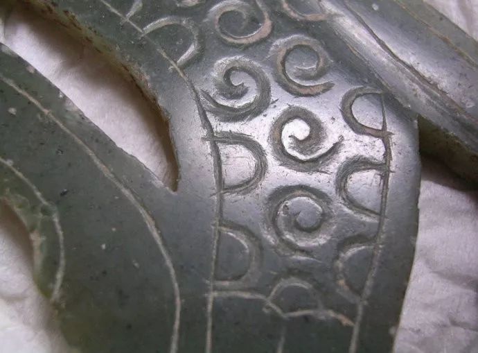 用细阴线雕出,隐约凸起,云朵排列极有规律。