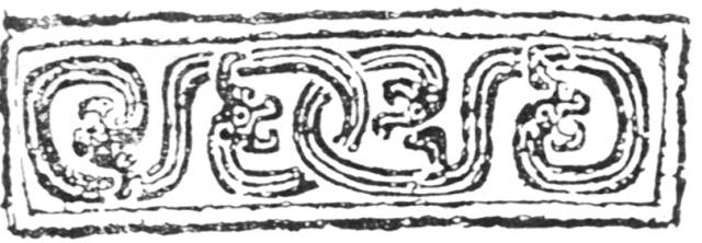 单元纹样个体较大,尾部较长且个别作回勾状,排列不甚整齐。
