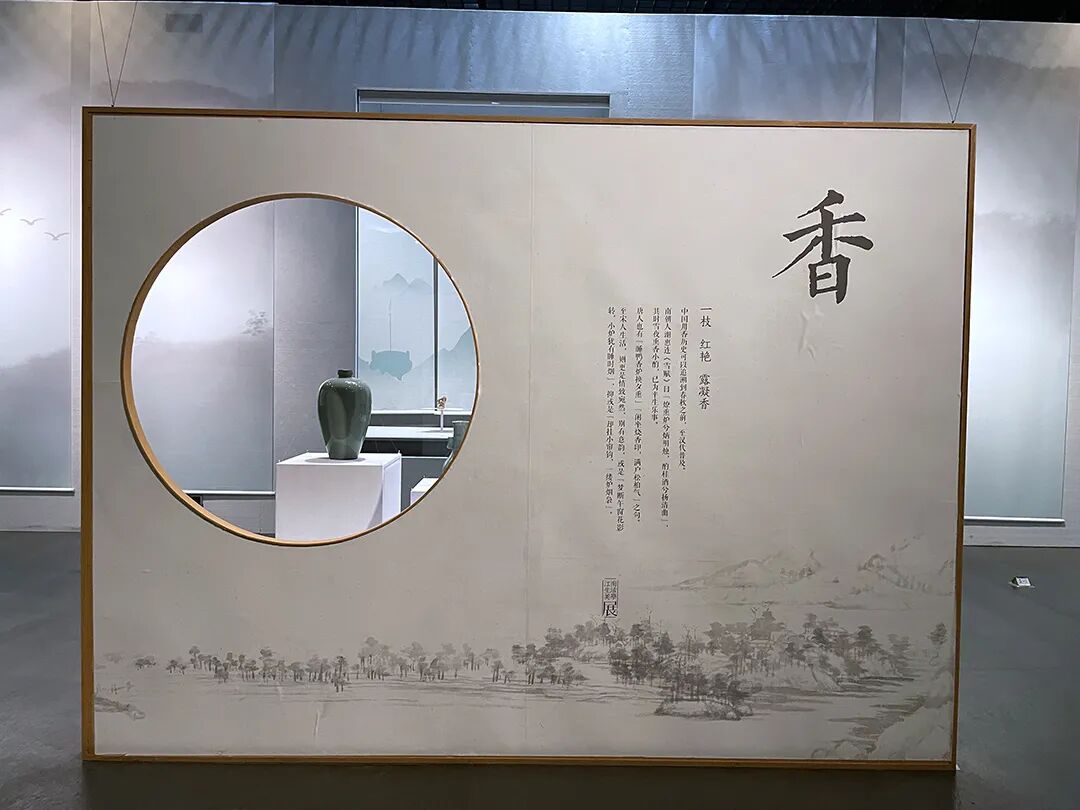 展览将“琴棋书画诗酒花茶香”九方面内容整合成“香”“闻”“味”“意”四个单元,用诗意和书画、故事贯穿全场,对“江南生活美学”重新“书写”,突破单纯的九个物质载体的框架,采用透视、平行叙述的策略,对各个物质载体之间的联系和互动进行重构,打破前后次序和中心主义,容纳更多的角度,充满更大张力,在平等、全面的框架中铺陈出立体的图景。