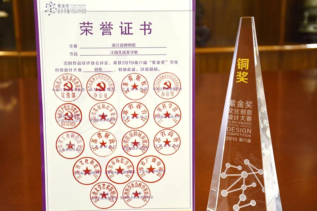 展览不仅深受观众欢迎,也得到了业内专业奖项的认可。在第六届“紫金奖”文化创意设计大赛上“江南生活美学展”荣获博物馆文化创意设计赛铜奖。
