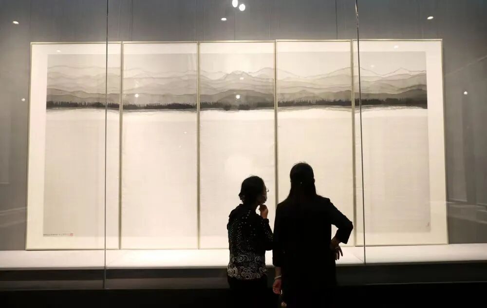 每一件展品背后都蕴含着对江南文化的独特诠释。比如著名雕塑家林岗制作的“九霄云佩”琴,具有强烈的后工业时代痕迹。他把使用过的、废弃的工业机械零件,采用焊接、铆合、螺丝组装等后现代的挪用与重组的构成方式,构筑了独特的艺术世界。织锦挂画《平湖秋月》,是由国家级非物质文化遗产丝织技艺传承人以陈家泠画作为原型创作的,以丝绸的细腻精致将画作的简约空灵体现得淋漓尽致,是一幅高度提炼后的现代艺术佳作。