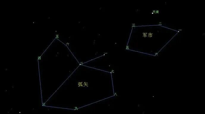 古人畏惧它,可又想打败它,所以在“天狼”的东南方向找了一把“弓箭”(弧矢星宫),试图让它盯着“天狼”不要轻举妄动。