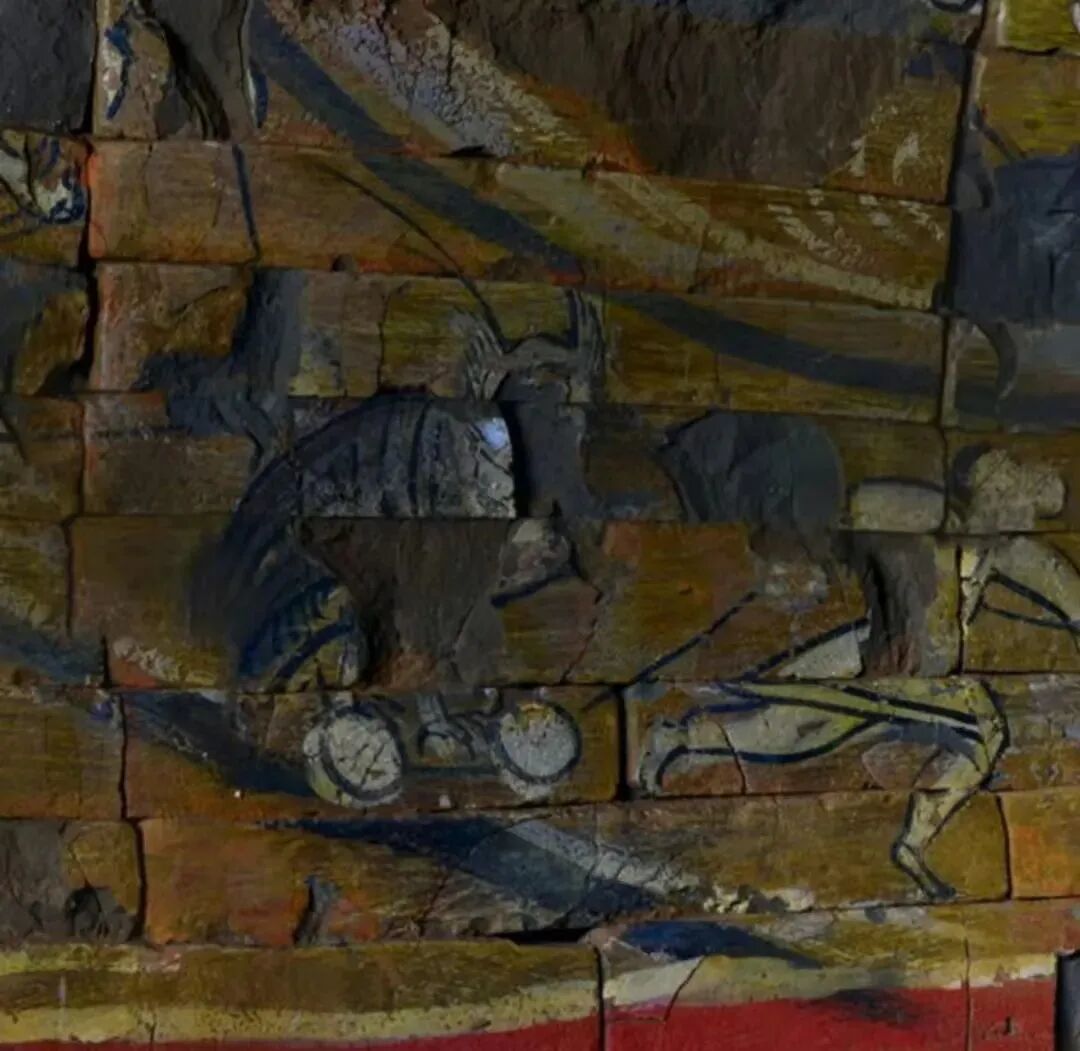 虽然面部壁画已经脱落,看不到它的表情,但是想想这个翘起来的角,还是有种莫名的可爱在里头。