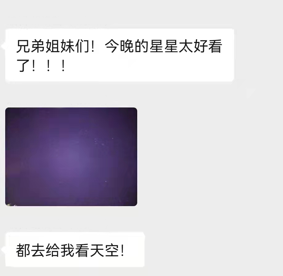 最近的天特别好。晚上在群里,一句“兄弟姐妹们!今晚的星星太好看了!”炸出了一大群奔向阳台看星空的人。
