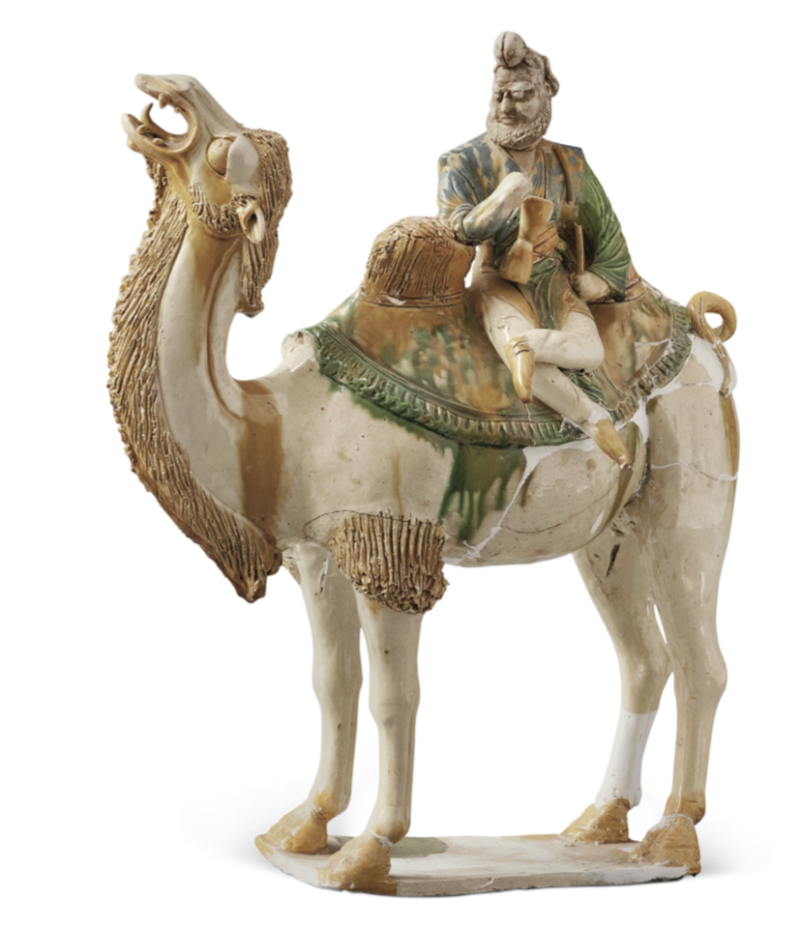 贞观十四年,唐朝攻灭高昌,“收马乳葡萄实,于苑中种之,并得其酒法,帝自损益造酒,酒成,凡有八色,芳辛酷烈,味兼醍醐,即颁赐群臣,京中始识其味”。位于太原的葡萄园最重要的任务之一就是要向朝廷进贡大量优质的鲜酿葡萄酒,诗人刘禹锡有幸得尝,以一首《葡萄歌》大加赞扬:“……马乳带轻霜,龙鳞曜初旭。有客汾阴至,临堂瞪双目。自言我晋人,种此如种玉。酿之成美酒,令人饮不足。为君持一斗,往取凉州牧。”杨贵妃“持颇黎七宝杯,酌西凉州葡萄酒,笑领意甚厚”,唐玄宗对她宠爱之极,非但不怪罪她酒后无法行礼,反而极爱她的醉颜残妆之美,于是唐代女子也纷纷用胭脂涂红双颊,仿作酒醉之貌。不过如果是想要原汁原味的美味,那自然还得去胡商的酒肆才能痛饮。更精明的胡商会把酒肆开在城门口,方便送别的亲友以酒饯行。而宾客一旦进入这样的酒肆,前来迎接的往往是娇俏妩媚的胡姬。被李贺描述为“鬈发胡儿眼睛绿”的胡姬们,捧来盛满美酒的胡瓶,异域风情十足的容貌一下就激起了广泛的好奇心,而她们劝酒时往往必不可少的节目便是乐舞。“胡旋女,胡旋女,心应弦,手应鼓。弦鼓一声双袖举,回雪飘摇转蓬舞。左旋右转不知疲,千匝万周已无时。”相比于中原传统舒缓柔美的乐舞,西域大胆热烈、豪放爽朗的欢歌热舞也足以在让观者大开眼界的同时,“酒不醉人人自醉”。最爱酒的李白,自然成了胡人酒肆的常客,于是胡姬也成了他诗文里的常客:只是在觥筹交错时笑靥如花、能歌善舞的胡姬们,在曲终人散后,往往难逃乡愁的煎熬。“一声似向天上来,月下美人望乡哭”,漫长的丝绸之路并非一路皆是欢声笑语,千里之外的故乡始终是游子的牵挂。
