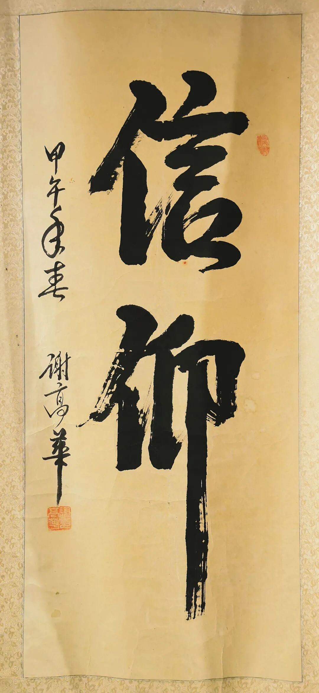 在浙江省博物馆《浙里不止小康——八个“窗口”看精彩浙江》展览中,陈列着一幅谢高华的手书《信仰》。这幅字原本挂在谢高华家的客厅。他曾说:“共产党人的信仰,就是要为老百姓吃饱饭杀出一条血路!”