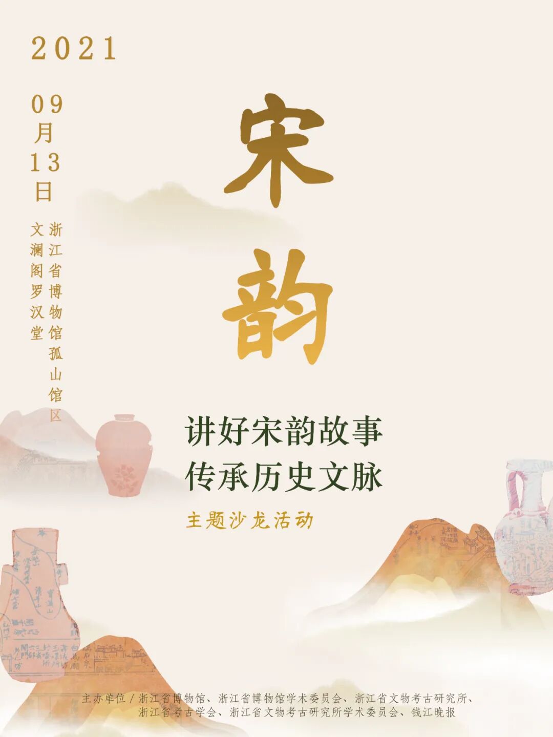 围绕讲好浙江故事,传承宋韵文化,浙江省博物馆将于2021年9月13日举办“讲好宋韵故事,传承历史文脉”主题沙龙活动。本次活动分为“瑞象重明——雷峰塔文物陈列”导览、文澜阁游览参观、宋韵主题沙龙三个环节。活动由浙江省博物馆、浙江省博物馆学术委员会、浙江省文物考古研究所、浙江省考古学会、浙江省文物考古研究所学术委员会、钱江晚报等联合举办。