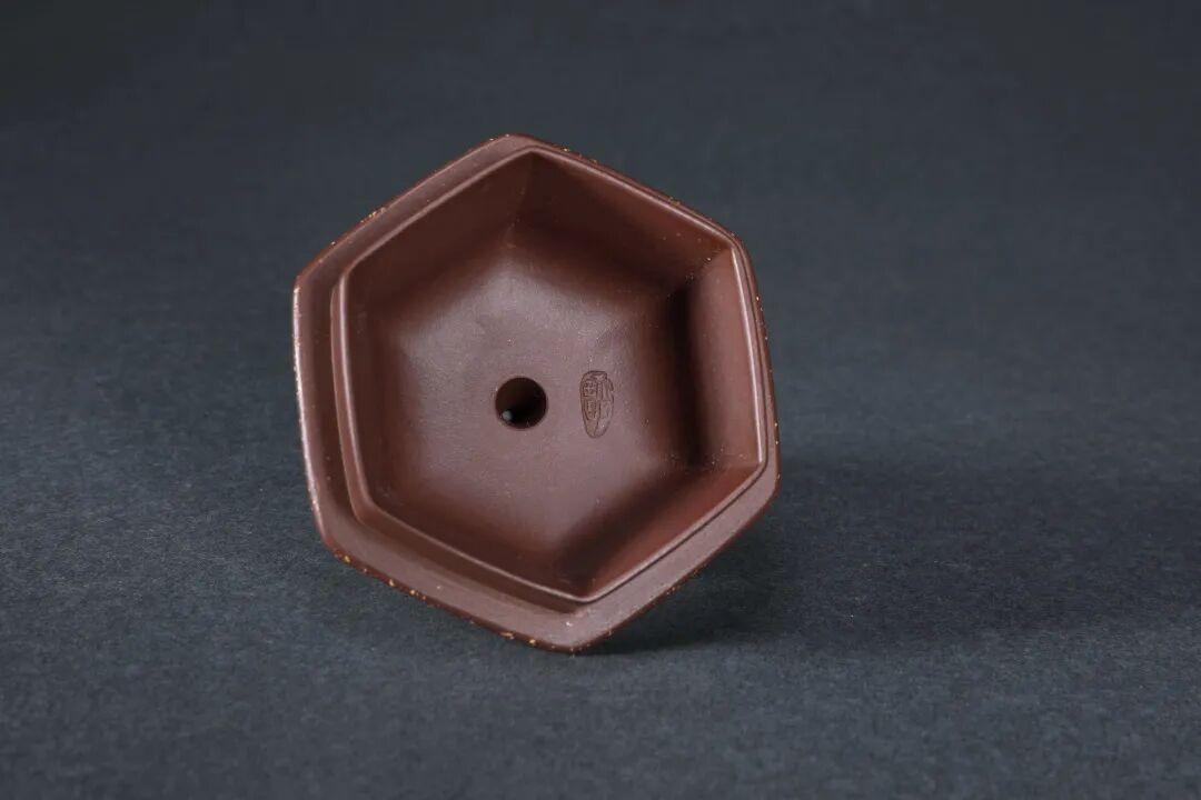 当代 吴界明制 紫泥铺砂六方莲子壶