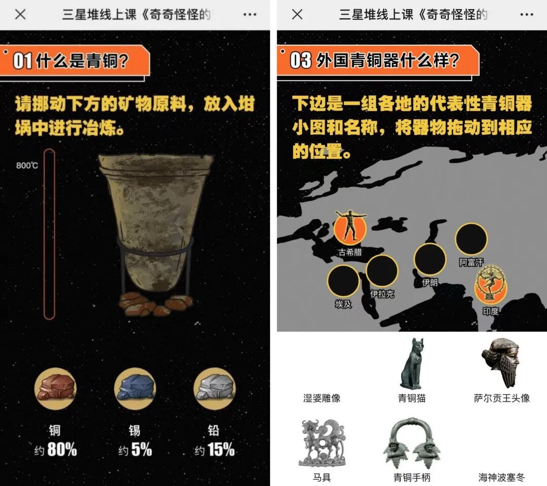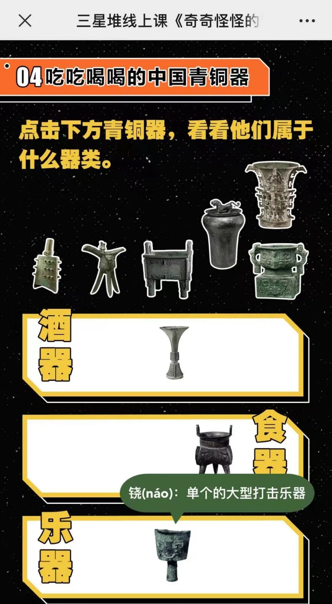 其中包含了三个互动课件:《奇奇怪怪的青铜器》(已上线)、《三星堆考古记》(待上线)、《古蜀人的黑科技》(待上线)。