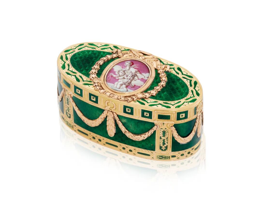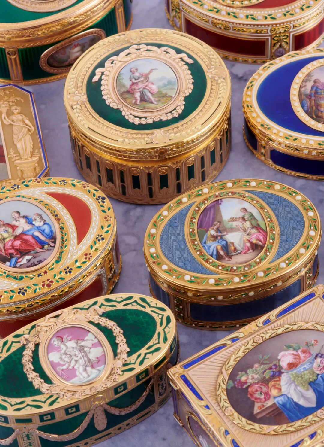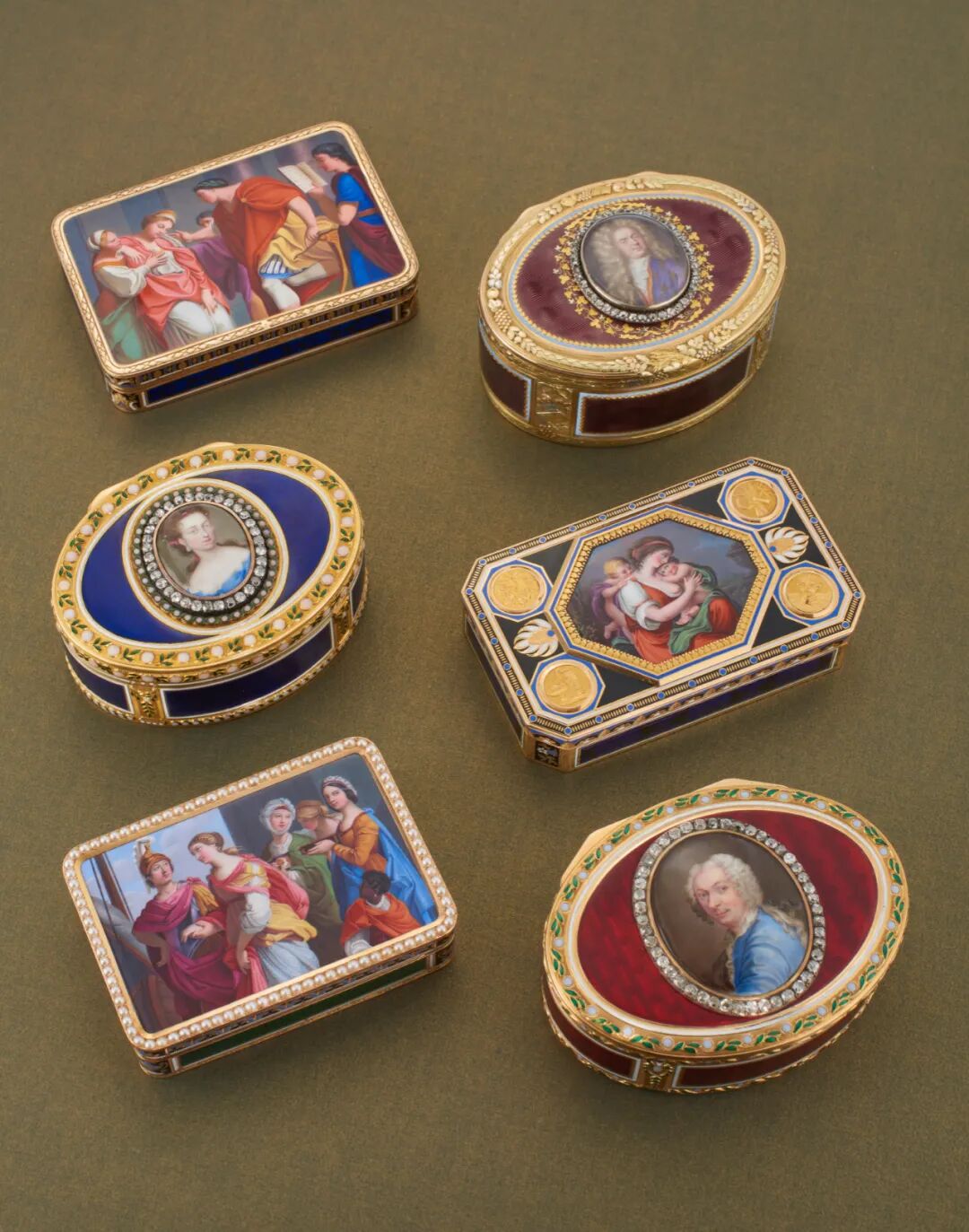 这些精致非凡的欧洲盒子大部分可追溯到十八世纪,当时亦是鼻烟盒的黄金时代,由当时一些最著名的金匠如Sageret、Drais、Blerzy、Toussaint和Rémond等制作。