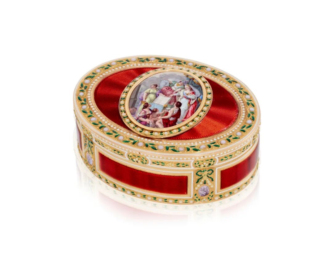 这些作品充分体现了收藏家对色彩的独特品味,大多数盒子都以精美的彩色搪瓷及珍贵的黄金为特色,突显了金匠的非凡创造力,尤其是那些曾在梅森(Meissen)或赛弗尔(Sèvres)接受过瓷器画师培训的珐琅师。这些绚丽多彩的精美金盒可说是12月迎接佳节的完美搭配!