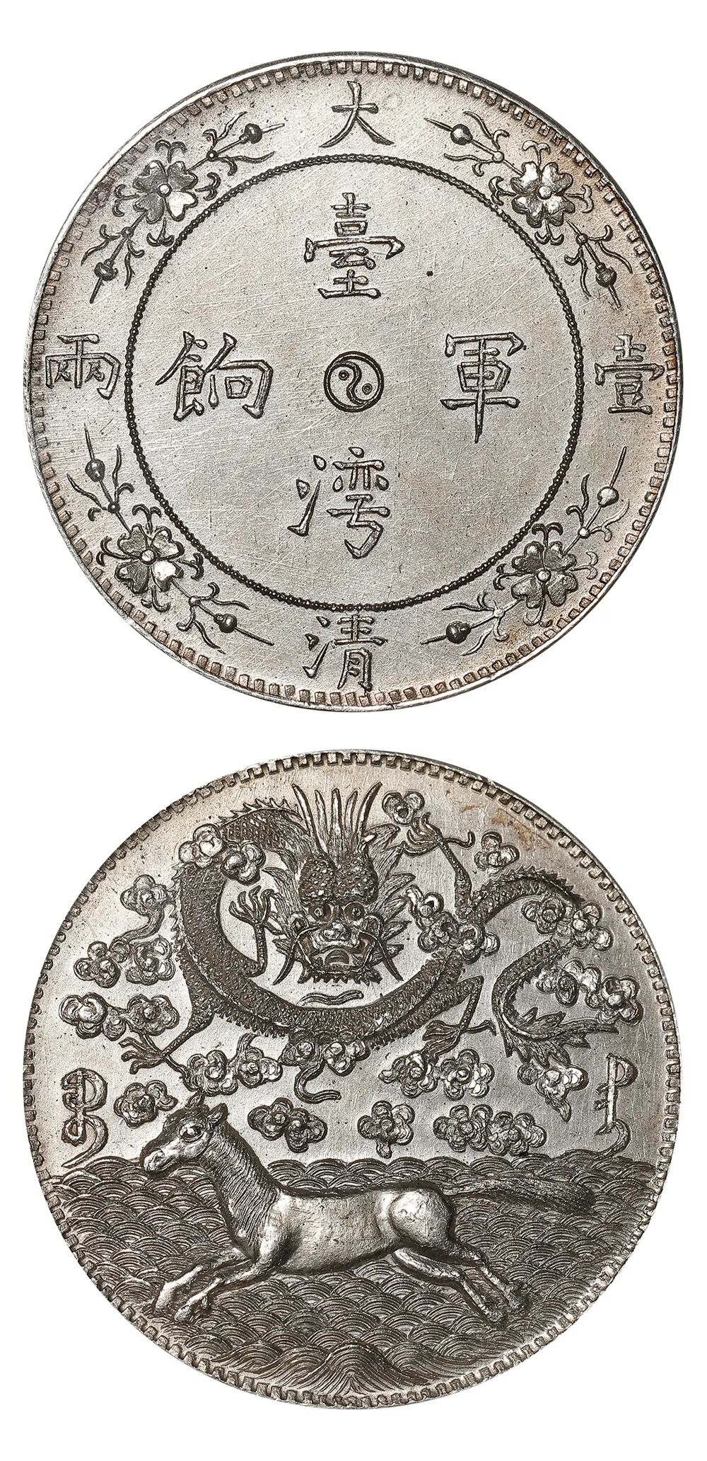 清·台湾军饷壹两背龙马臆造银币