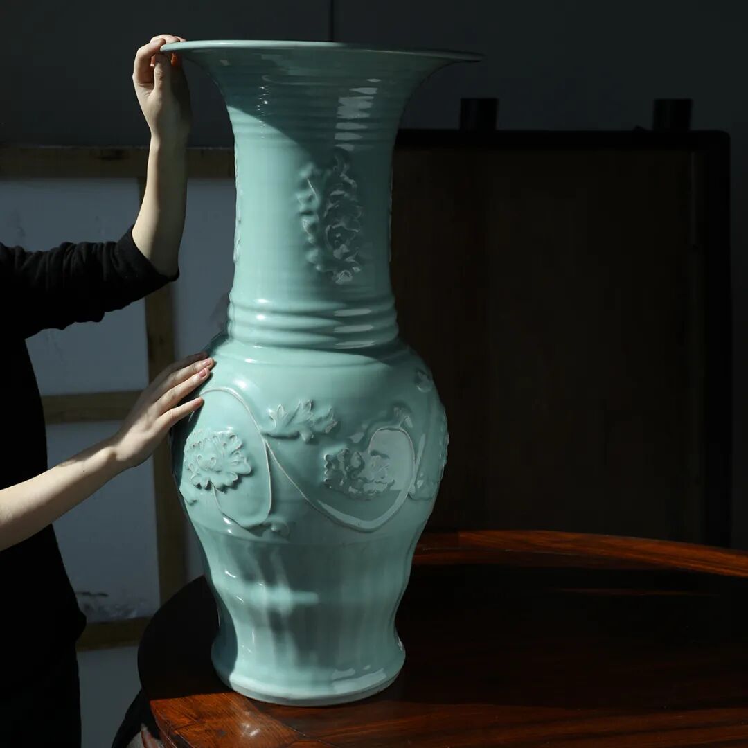 元·龙泉窑堆塑缠枝莲纹凤尾尊