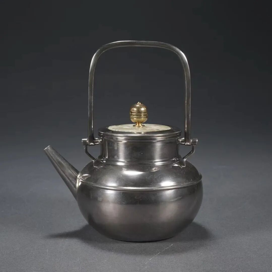 说明:附作者证书及其子鉴定合照。此壶造型简约,身若井,风格高洁古雅,壶体扁圆,圆腹上收下敛,圆折肩,环形耳把,短流微曲,出水甚好。整体造型,粗细对比,曲直相间,圆润中透出古朴韵味,造型洗练却无以增减。器身镌刻诗句:“汲井匪深,挈瓶匪小,式饮庶几,永以为好”,茗茶之韵尤显,文人气息浓厚。