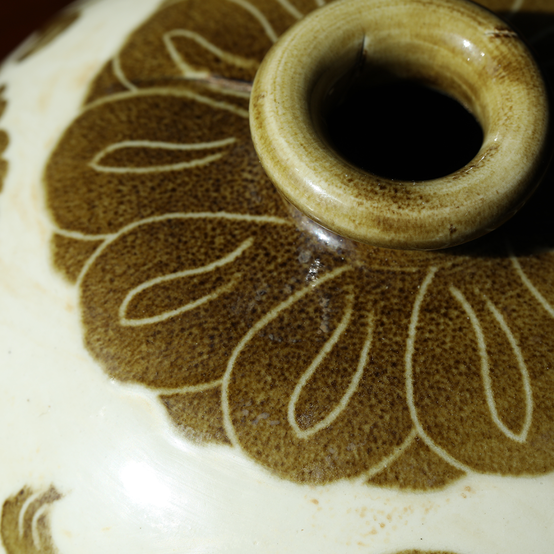 元·定窑剔褐彩花卉纹嘟噜瓶