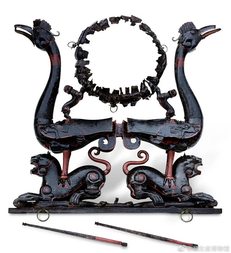虎座鸟架鼓出土于枣阳九连墩楚墓,