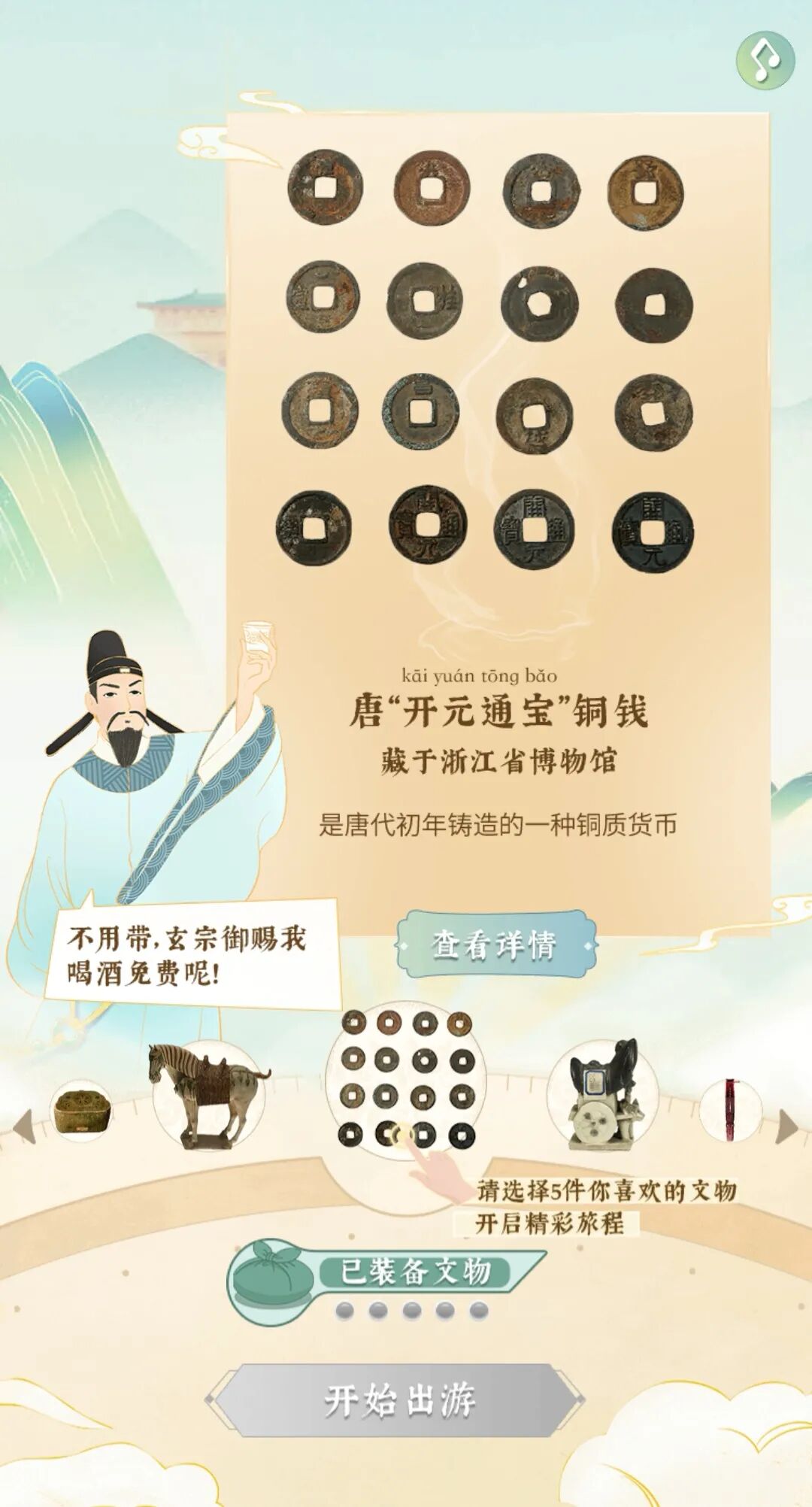 李白看出你的担忧:“放心,在我们这个年代他们还不算文物,这只是一个做给文物爱好者的梦而已,你要选择哪五件一起出游呢?可不要贪多。”