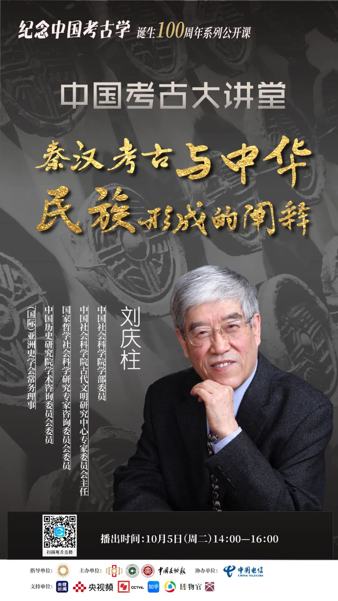 ”中国考古大讲堂”第九场,将于2021年10月5日14:00-16:00,线上播放。本场讲座,我们邀请到中国社会科学院学部委员、中国社会科学院古代文明研究中心专家委员会主任刘庆柱老师,为我们带来《秦汉考古与中华民族形成的阐释》。中华民族的概念,来自于郭沫若主编《中国史稿》“统一的多民族中央集权国家”,此“多民族”即可解读为最早的“中华民族”概念。从秦汉考古的发现中,我们可以从行政区划、郡县设置的角度,来领略中华民族之疆域意识。从一脉相承、一以贯之的都城与帝王陵寝形制,来探究中华民族之国家文化与民族认同。同时,考古发现秦汉都城的“中和”精神,更是对后世产生深远的影响。主讲人将从这些方面,宏观地叙述秦汉考古中的发现,并阐释考古发现是如何佐证中华民族形成这一历史命题。刘庆柱,中国社会科学院学部委员,中国社会科学院古代文明研究中心专家委员会主任,国家哲学社会科学研究专家咨询委员会委员,中国历史研究院学术咨询委员会委员,德国考古研究院通讯院士、(国际)亚洲史学会常务理事。国家级有突出贡献专家、享受国务院政府特殊津贴专家。中华炎黄文化研究会学术委员会主任、中国古都学会名誉会长、中国圆明园学会名誉会长、中国名山名寺名观文化研究会总顾问,现代人类学教育部重点实验室学术委员会副主任。2016年被授予“人类学终身成就奖”。原中国社会科学院学部主席团成员、中国社会科学院历史学部主任、中国社会科学院考古研究所所长。先后参加并主持秦都咸阳遗址、西汉十一陵、关中唐十八陵、秦汉栎阳城遗址、西汉杜陵陵园遗址、汉长安城遗址、秦阿房宫遗址等考古勘探、发掘、研究。参与国际“丝绸之路起点——长安与天山廊道”、中国“大运河”申遗考察、评审工作。本人研究领域主要为中国古代都城考古学、古代帝王陵墓考古学和汉唐考古学、古代文明等。发表论文三百多篇,已出版专著二十多部(其中考古报告4部),其中专著《汉长安城未央宫》《汉杜陵陵园遗址》《中国考古学·秦汉卷》《蜀道》《不断裂的文明史:对中国国家认同的五千年考古学解读》等获中国社会科学院优秀成果奖、夏鼐考古学研究奖、郭沫若历史学奖、中国政府出版奖、中宣部“2020中国好书”。本次讲座,腾讯博物官携手腾讯新闻为大家带来实时直播,欢迎大家扫码预约!