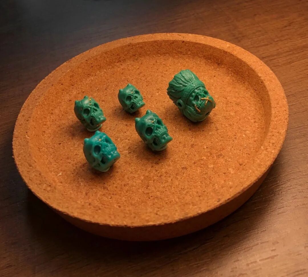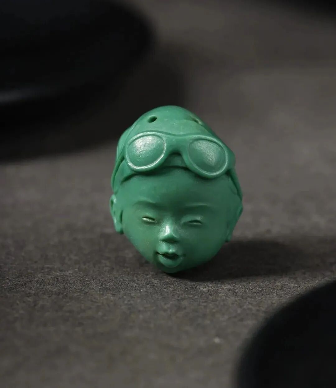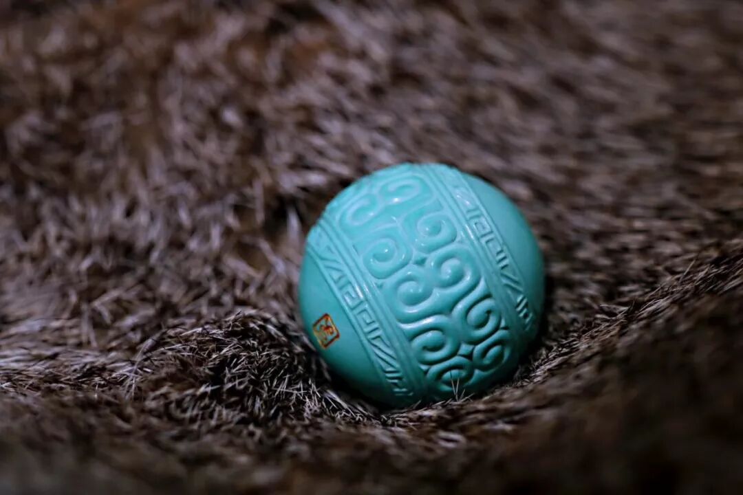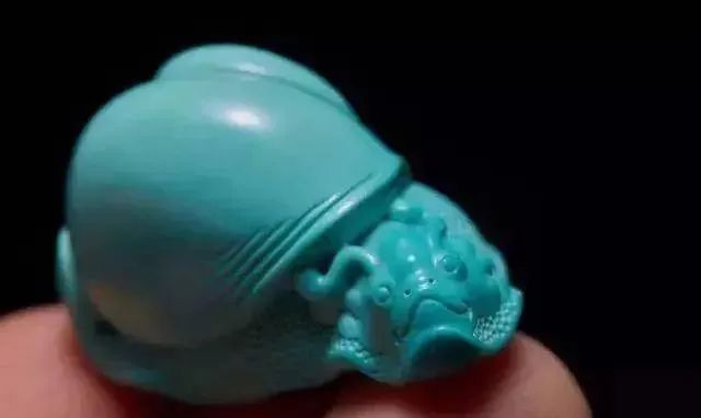泡松(面松)硬度最低,没有光泽,如果是未沁过胶的,无法划动玻璃,但如果手上有汗时会粘手。就像冬天用舌头舔冰块的那种“粘”一样只蘸水几秒钟就会出现十分明显的水线,入水部分的颜色会加深很多。所以,这类松石可能只需要盘玩数月就会出现很明显的色泽变化,但同时也要注意盘玩时手要洗干净,因为脏东西也更容易盘进去。(市价几十到一百多一克)中瓷、细瓷胎型(面料比较干净,瓷度中等,常用来做雕件,桶珠、圆珠,市面上一般都称作高瓷)市价在200-350不等,雕件一般还要加上工费,在水里泡上十几钟也会出现颜色变深的现象,但不那么明显。
