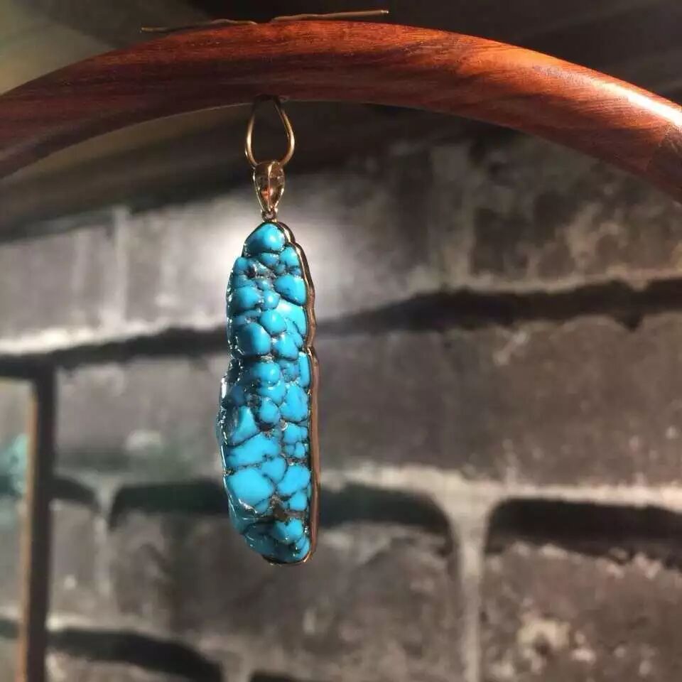 3、绿松石的颜色,绿松石的颜色有很多中,绿色是最普遍的颜色,深绿、墨绿、淡绿、绿色、白蓝、淡蓝、深蓝、高蓝,其中以高蓝为最好,一般的能达到高蓝的绿松石必是高瓷,如果绿松石的瓷度达不到高瓷的话,再蓝也不会泛光,就达不到高蓝。与这些级别对应的松石颜色也是越来越饱和的。注意是“饱和”而不是“深”,比如最好的天蓝色(高蓝)和略次于他的深蓝绿来说,在色谱中“K”值要低,就是黑色要少。(这里指的是纯天然无优化的松石颜色,注胶、灌胶处理过的松石的不在此较之列)4,绿松石的品相,同等材质的绿松石做的饰品,肯定是品相好的,干净 、铁线分布均匀的比表面附生矿多、有疤有裂的要贵