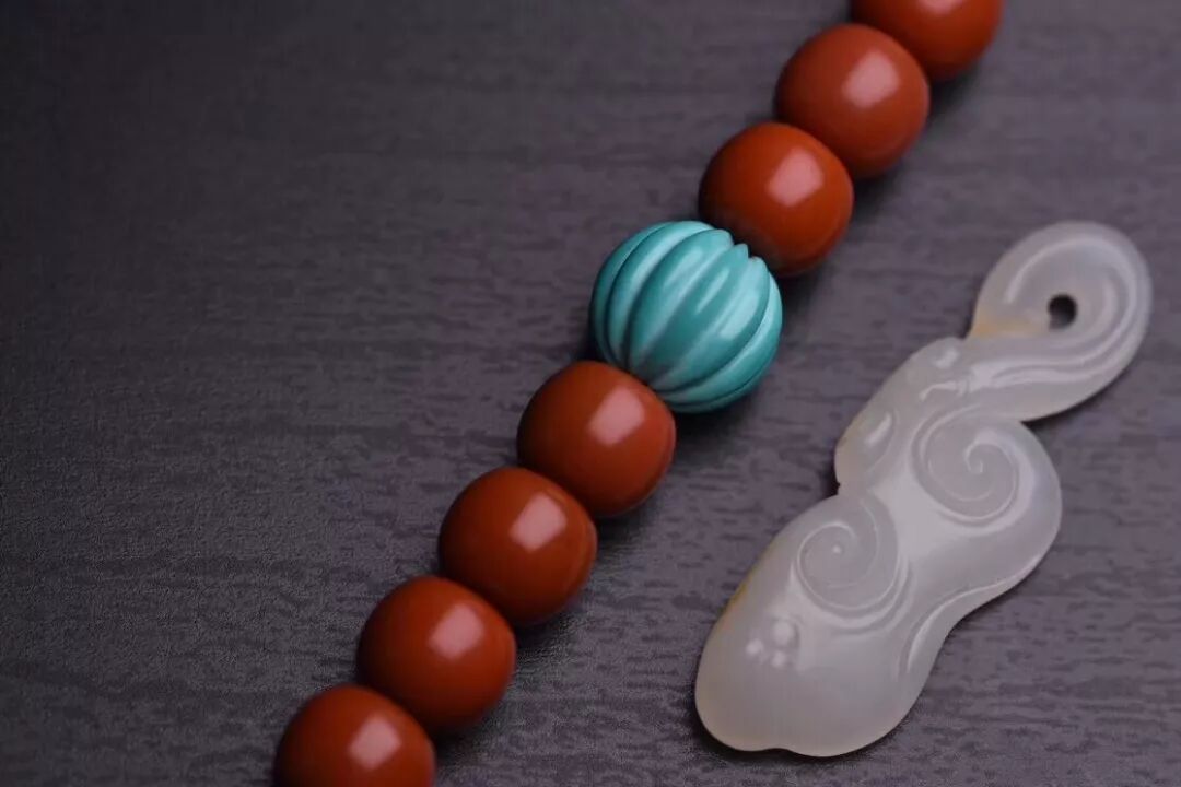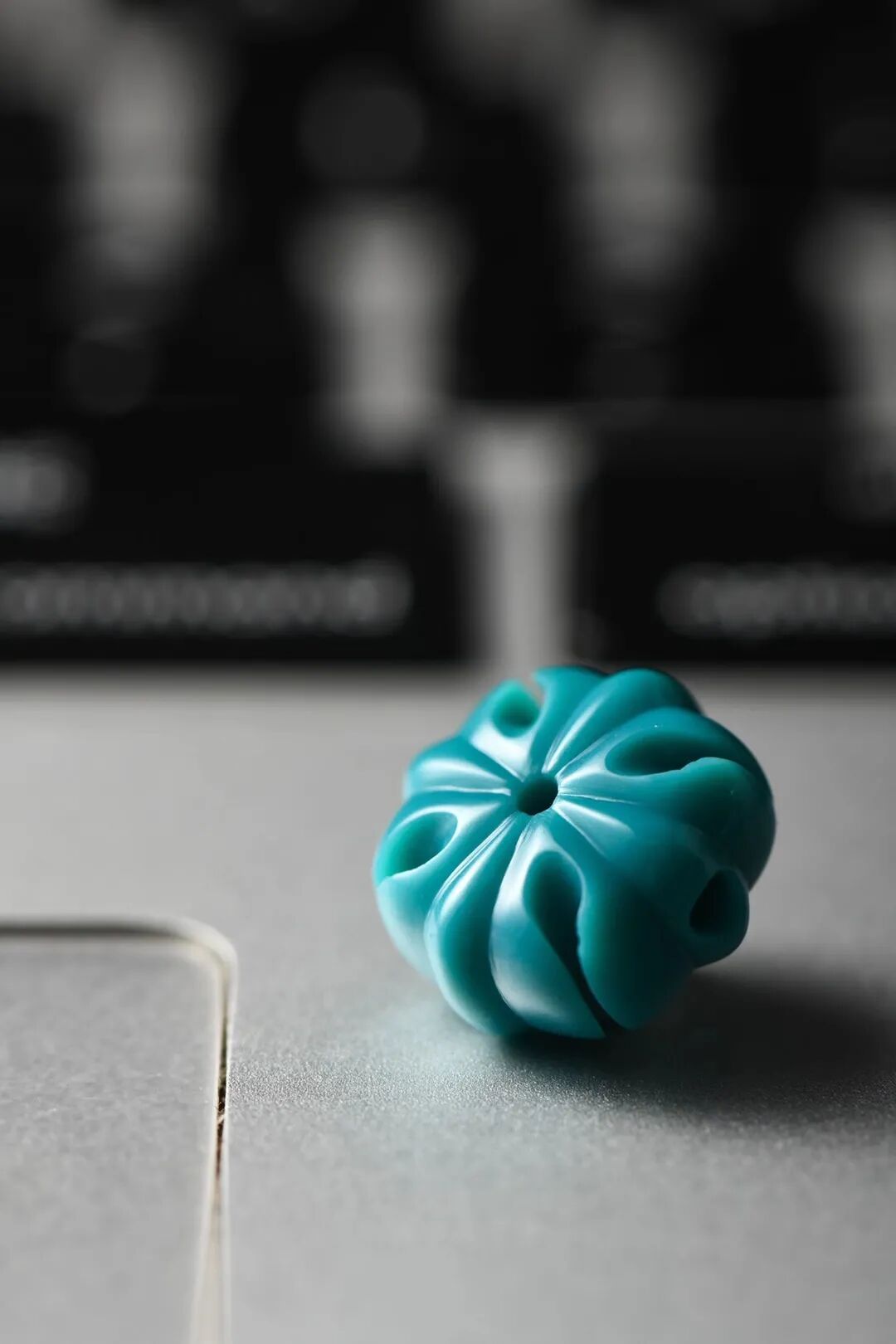 1,差不多品相的绿松石圆珠比桶珠、算盘珠贵,大直径的圆珠比小直径的贵。为什么呢?这要从绿松石的的矿层结构说起,绿松石的矿床大多都是鸡窝状,整块的大料本来都不是很多,一般的有完整的能作为雕刻的大料子,大家基本都是拿去雕刻了,很少用来做珠子,很多加工坊觉得做珠子太废料了,所以在市面上圆珠比桶珠、算盘珠贵,大直径的珠子比小直径的珠子贵是根据损耗率来定的价。