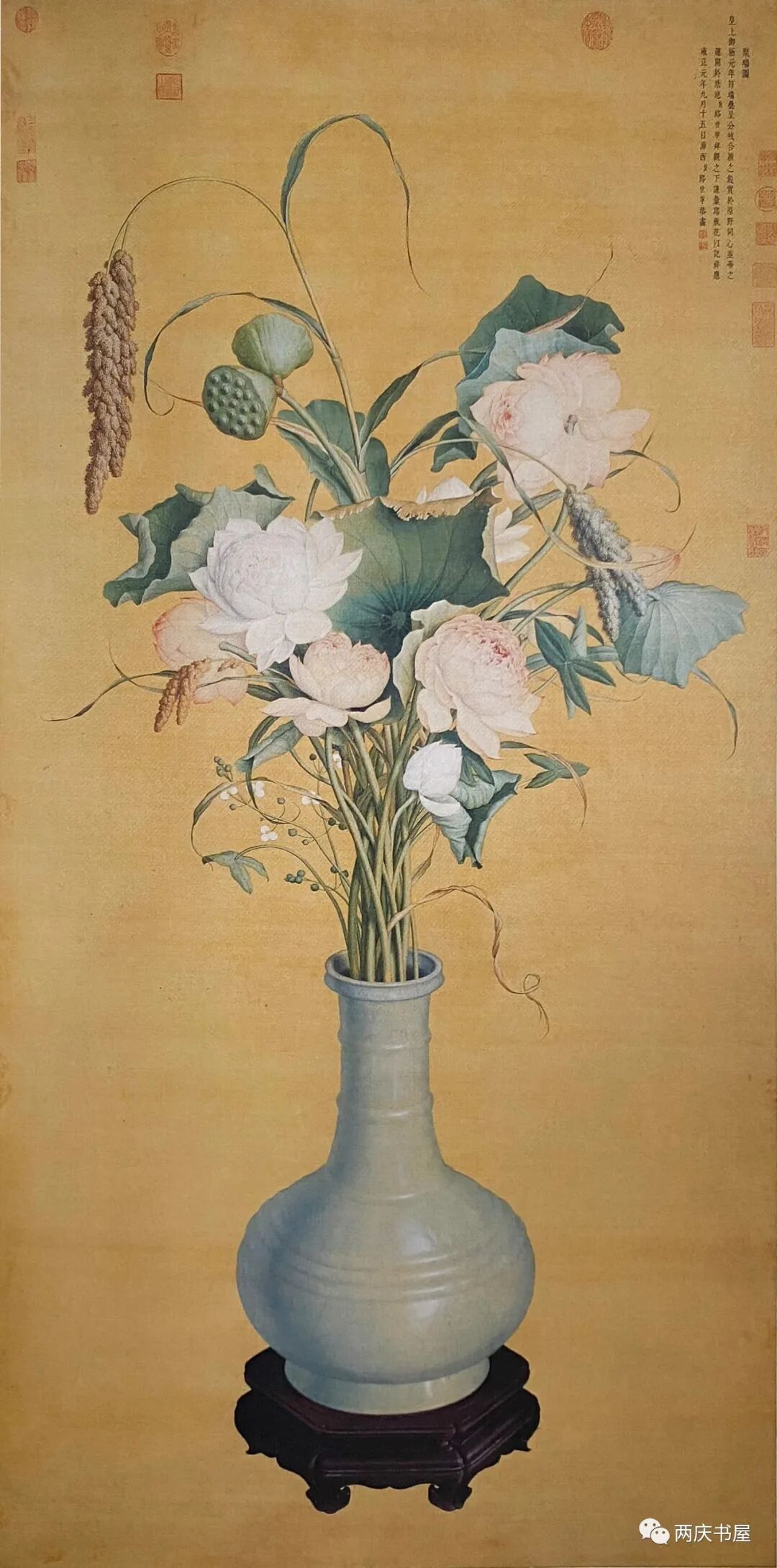 Next, let us explore the cultural and historical background of the imitation of porcelainof Song Dynastyat the Nian kiln. In short, this is a reflection of the Yongzheng emperor’s love for antiques. As we all know, before Emperor Yongzheng ascended the throne, he lived a life of leisure as the Prince of Yong. In the first year of the Yongzheng period, the Yongzheng Emperor writtenthe following review of his pleasant life as the Prince of Yong:"For several decades in the vassal residence, Ilived a leisure life and collected quite a lotofantiques and refined things."In fact, many court paintings reflect the Yongzheng emperor's taste for antiquity.For example,the theme of a court paintingpainted by Lang Shining to celebrate changingthe title of thereignto Yongzheng is a celadonvase fromSouthern Song dynasty with lotus.