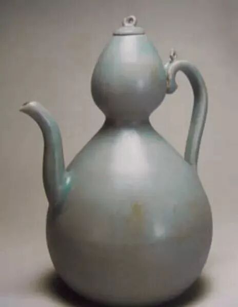 1980 年北京市丰台乌古论窝论墓出土青瓷葫芦型执壶,墓志纪年为金大定二十四年(1184)。小口,平底,双腹束腰,呈葫芦状。胎灰质细。釉面光润,光素无纹,工艺细巧。
