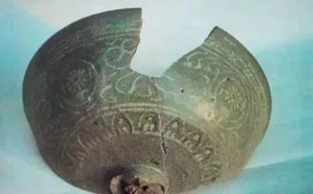 1967 年浙江省杭州市半山宋代墓葬出土高丽青瓷葵口式残碗。敞口,弧腹,裹足支烧,底呈三个支钉痕。碗内刻牡丹花纹。灰胎坚致。釉色青灰,釉质滋润,工艺精致。同墓出土“绍兴十九年(1149)”铜镀金官印一方。