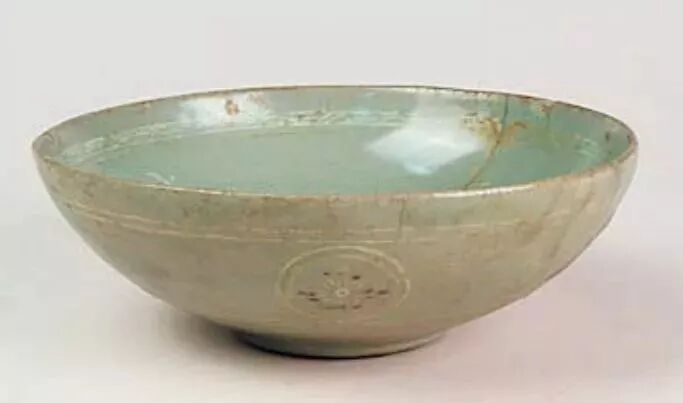 2005 年在山东蓬莱登州港的古船上发现 2 件高丽镶嵌青瓷残碗,年代为元末明初。总体工艺粗糙,为高丽晚期产品。