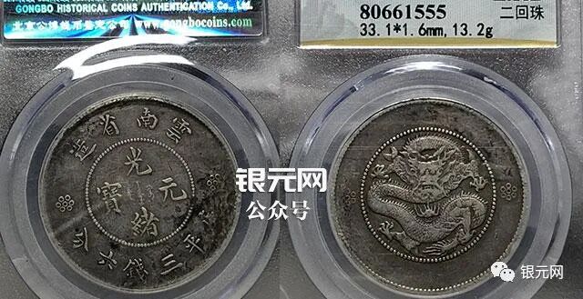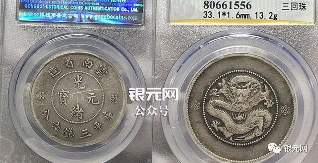 还有就是云南半圆,无论是新龙还是老龙,数量比起七钱二分的还是多的,但是七钱二分却比三钱六分价格要高。“银元网”公众号。同等品相下,一枚老龙半圆的价格是新龙的7、8倍,一枚老龙库平七钱二分也比新龙要贵得多。这个大家也要做个了解。