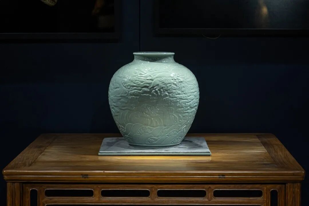「盛清皇權」專場封面拍品清乾隆粉青釉浮雕「蒼龍教子」圖大罐體形碩大,釉色瑩潤均勻,浮雕工藝超卓,器身通體凸飾蒼龍教子紋,寄予弘曆對繼任人傳承盛清的厚望,是雍正晚期至乾隆間單色釉作品中顛峰之作。本次以5,280萬成交,成為本季香港秋季拍場王者,見證非凡價值。