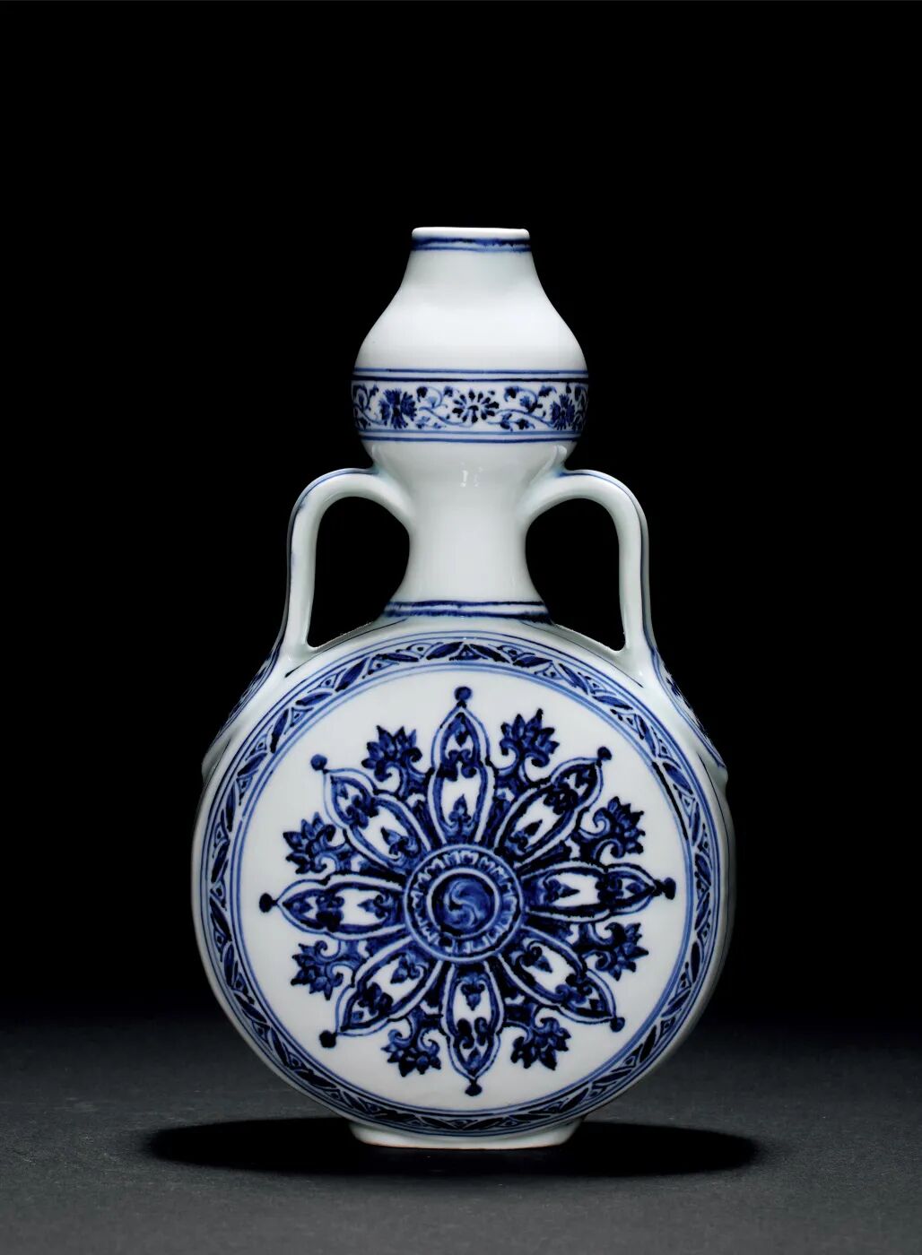 明永樂 青花輪花紋綬帶耳葫蘆瓶