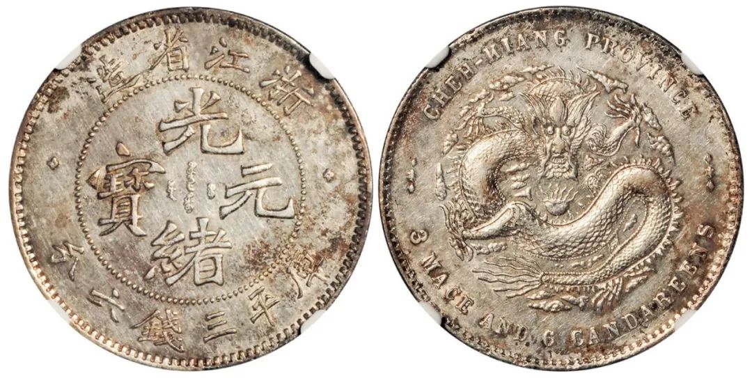 简介:1899年浙江省造魏碑体光绪元宝库平三钱六分银币一枚,Y-54/LM-283,浙江魏碑版银币所见多为银毫,七钱二分及三钱六分均稀少,邮票钱币收藏家朱焕钧、资深钱币专家陈吉茂递藏,NGC-ACAB AU58+