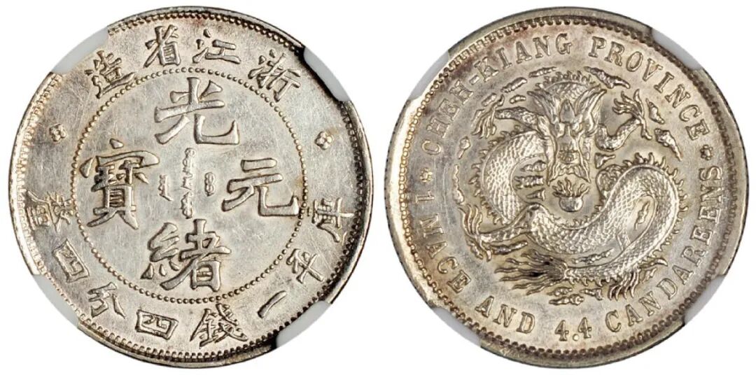 浙江省造魏碑体光绪元宝库平一钱四分四厘银币/NGC-ACAB MS61