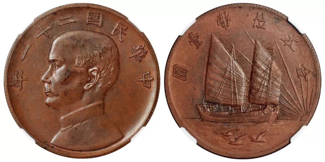 简介:民国二十一年孙中山像背帆船下三鸟金本位壹圆银币铜质样币一枚,齿边,上海中央造币厂试铸,银币未发行;样币为初打,铸模深峻,工艺精湛,品相极佳;资深钱币专家陈吉茂藏品,NGC-ACAB MS64BN,目前获该公司评级入盒者仅此一枚,于PCGS公司评级币中亦属顶级分数。