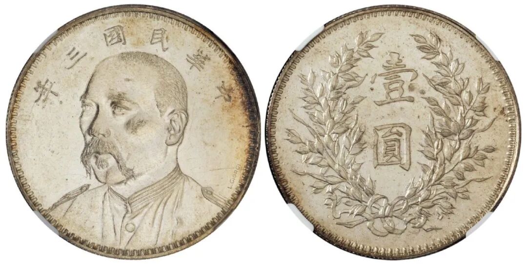简介:民国三年袁世凯像七分脸“L.GIORGI”签字版壹圆银币样币,KM-Pn33/LM-73,未发行,铸工精湛,罕见,资深钱币专家陈吉茂藏品,NGC-ACAB MS60