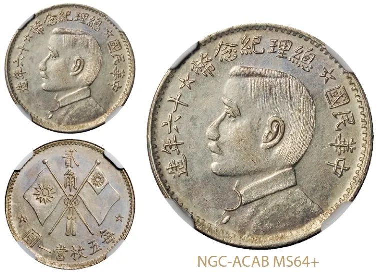 简介:民国十六年孙中山侧面像总理纪念币贰角银质样币,KM-Pn6/LM-848,存世稀少,状态极佳,品种与品相均属难得,资深钱币专家陈吉茂藏品,NGC-ACAB MS64+